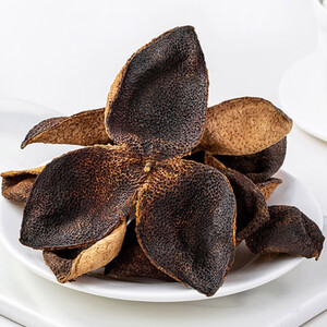 三瓣相连厚薄均匀,陈香浓郁泡茶清香。采用新会陈皮炮制工艺,柑皮分明完整。