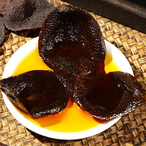 陈皮外层油室清晰可见,富含多种微量元素。足年陈化茶色明亮,入口甘醇顺滑。