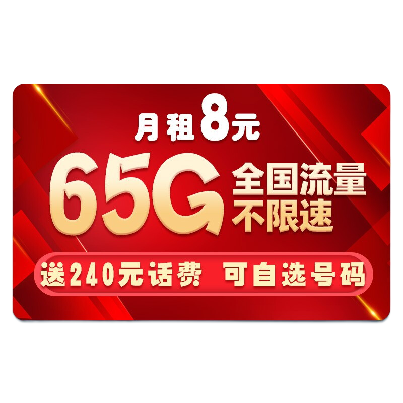 每月65G通用流量,30G(抖音,快手,爱奇艺,优酷,腾讯视频)定向免流,赠送300分钟免费通话,全国接听免费 上榜理由: