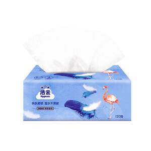 可干湿两用的纸巾,高档哑光包装,火烈鸟印花图案,吸睛惹人爱。原生木浆生产,柔韧不掉屑。首张折叠工艺,轻松开启每一抽。 上榜理由: