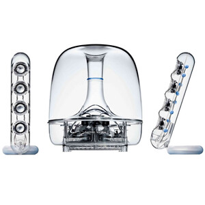 8英寸长冲程超低音扬声器设计,低频响应结实有力,最低可下潜至40Hz,搭配飞碟遥控器,各种音源能够直接选择切换。