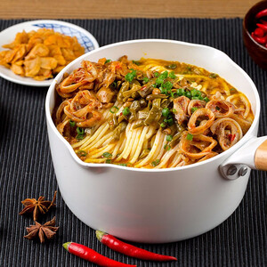 粗细软硬适中,粉质不粘不糯,吃起来爽滑细腻,内含的酸笋鲜香味美,十分爽脆,六大配料,口感丰富,越吃越爽。