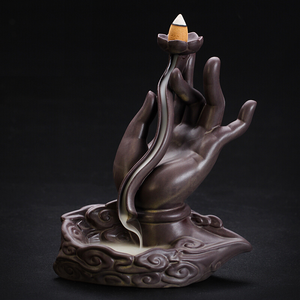 以观音佛手为创意原型,配以莲花与祥云图案,使香炉既美观又实用。香炉用仿古的釉面制作,触感舒适,放在家中古韵悠扬。