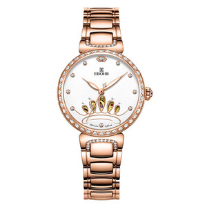 皇冠镂空造型的表盘,玫瑰金色金属,带来轻奢质感,外表多颗锆石装饰,让整个表盘看起来绚丽多彩,带给你轻奢时尚。