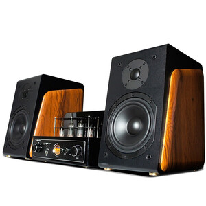 复古的棕红色木纹箱体结合香槟金拉丝面板,轻松融入现代家居。全频喇叭阵容,准确定位声音,在家也能体验临场音效。 推荐商品