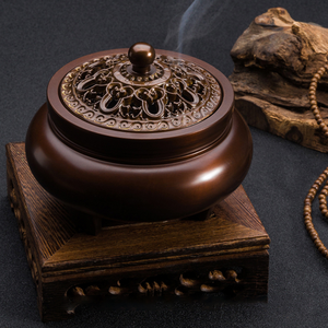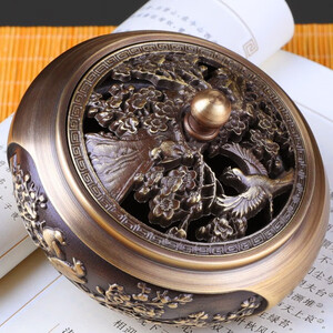 严选特A级黄铜材质,质地坚硬沉重,耐热耐高温,久用不变形。镂空精雕炉盖,花纹精美细腻,结合做旧工艺,更彰显古典韵味。