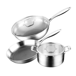 整个套装采用了优质的不锈钢材质,具有良好的导热效果,并且不会轻易的生锈。加上平底锅型设计,受热会更加均匀。