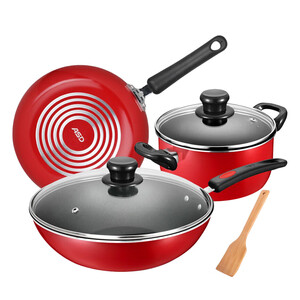 整个锅具套装是红色系的款式,彰显出时尚大气的感觉。加上内里的不粘工艺设计,具有不会粘锅的现象,彰显质感。                    上榜理由: