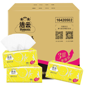 清新的黄色包装带来活力满满的生活气息,三层加厚,柔韧升级,舒柔亲肤的质感让你爱上用纸体验。