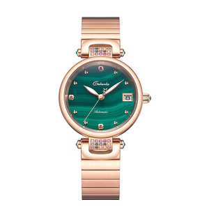 表盘镶嵌璀璨粉钻,辅以孔雀绿表底,带来震撼的视觉冲击。具备双蝴蝶按扣,单手开合更方便,晨起佩戴不再手忙脚乱。