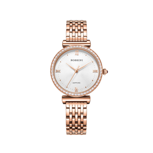 采用316L不锈钢表带设计,光泽出众亮丽持久不褪色,同时佩戴时更加舒适。锆钻镶嵌的表圈,令手表更加闪耀夺目。