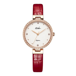 表圈采用多颗锆石环绕镶嵌,外观璀璨吸睛,且佩戴时更闪耀夺目。红色皮质表带贴腕舒适,同时更好的彰显出女士优雅的气质。 上榜理由: