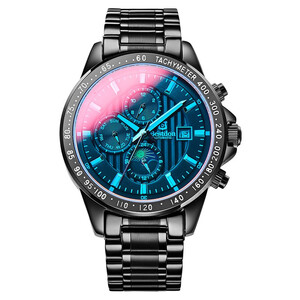 表盘炫彩镜面,腕转之间可切换绿色和橙色,搭配黑色精钢表带更协调,集日,月,时和车速测速功能为一体,多功能更有型。 上榜理由: