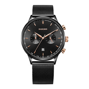 黑面玫瑰金色指针的旋钮钉,轻奢感十足,进口机芯稳定走时减小误差,时尚黑色米兰带,整体沉稳简约,更添型男强大气场。 推荐商品