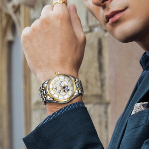 镂空后盖设计,可时刻观察机芯运转。小牛皮表带,双按蝴蝶扣,潮范十足。人工合成蓝宝石拱形镜面,可50米深度防水。 上榜理由: