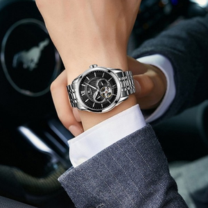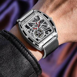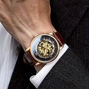 双面镂空设计,全景背透,可透视机芯运转,酷炫感十足。有皮带和刚带两周表带可选,多种颜色,时尚百搭。做工精细,走时准确。