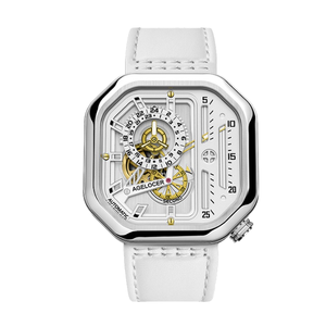 视觉清新的白色表身,加上金色点缀,个性吸睛,佩戴更显潮流气质。皮革表带的精细车缝,走线工整无偏差。