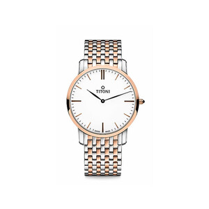 金属的表带,搭配双按蝴蝶扣的设计,大气实用,可以轻松戴取,扭索纹的表盘,俊雅经典。