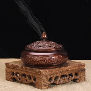 遵循古代宣德炉的基础,具有古典韵味,立体镂空炉盖更显精致典雅,配合冉冉升起的白烟打造出雅致意境。