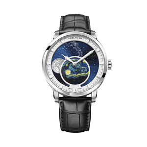 月相表盘设计,以静谧蓝色呈现璀璨星河,为腕间增添一抹神密浪漫色彩,表带以牛皮材质打造,柔软细腻,透气效果佳。 上榜理由: