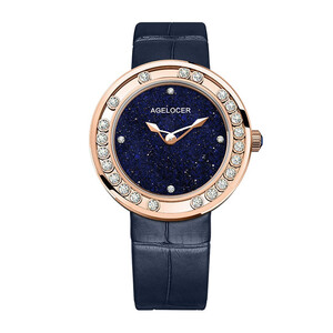 蓝色砂金石的表盘神秘而个性,搭配表圈锆石镶嵌,彰显尊贵气度。皮质表带经典大方,驾驭多场合搭配。