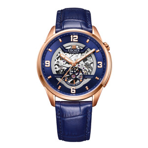 表盘大尺度全镂空的设计,机芯运作让你尽收眼底,带给你机械震撼感。玫瑰金色的表壳搭配深蓝皮带设计,更显出绅士的出众品味。 上榜理由: