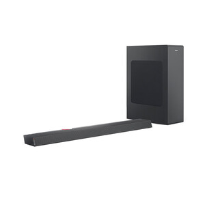 有超薄低音炮和2.1声道条形音箱组成,提升电视节目音效。内置三种音效模式,不同场景用不同音效,获得身临其境的音效体验。 上榜理由: