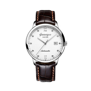 真皮材质的表带,质地很柔软,带来舒适细腻的触感。采用人造蓝宝石玻璃表镜,质地清晰通透,读时更加方便。蓝宝石玻璃,耐腐蚀。