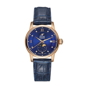 心月系列整体汲取了圆月灵感,线条柔美优雅,为你烘托出纤细手腕。蓝色珍珠母贝表盘与钻石时标融合,加冕优雅光芒。 上榜理由: