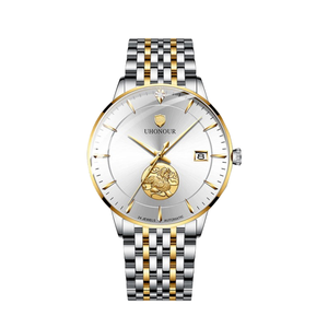 盘龙金币装饰盘面,与间金表带相结合,彰显华丽轻奢的魅力风格,50米生活防水,无惧雨淋,日常洗手也不用摘。 上榜理由: