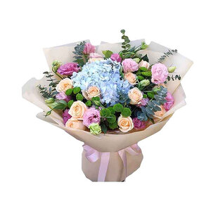 精选美观花材,经过细致装饰,让鲜花不再单调,符合现代人的审美;花束整体外表优雅,可以有效渲染温馨的氛围。