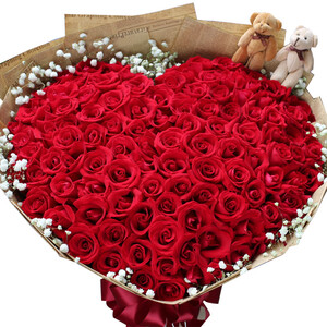 精选33朵玫瑰花材扎成爱心型,寓意着爱你天长地久,白头偕老,可谓是送女友好选择。