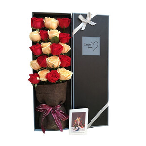 精美的玫瑰香皂花礼盒,花瓣逼真,自然饱满,可长期保存,并带有淡淡香味。时尚造型,添加条纹蝴蝶结点缀,更显浪漫。 推荐商品
