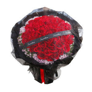 绚丽红玫瑰配以黑纱覆面,神秘梦幻,同时起到保护花束的作用。作为情人节或生日礼物,富有仪式感。