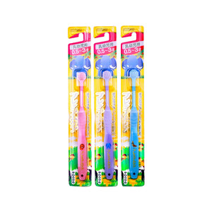 儿童适用的软毛牙刷,质地舒适柔软,倍护稚嫩口腔。刷头采用圆头设计,减少对口腔的刺激。带防滑纹路设计,孩子易于掌控。