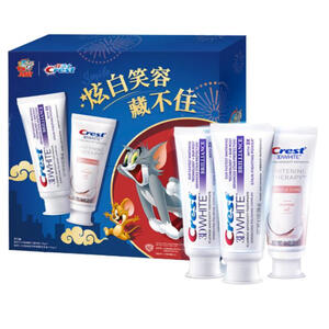 猫和老鼠限定版礼盒,充满趣味。内含佳洁士两款美齿星品,热感美白牙膏和精油美白牙膏,能够达到深层洁净,持久美白效果。