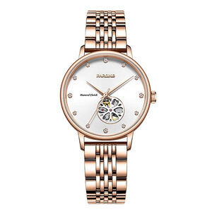 玫瑰金颜色华丽出彩,可以展现出轻奢大气的美感。表盘的设计融入了镂空百合花,浪漫梦幻。锆石装饰时钉,闪耀光芒。 推荐商品