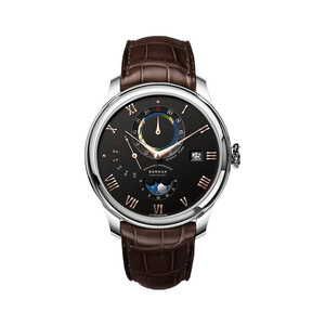 银色表壳亮丽有光泽,加上黑色盘面,显得低调有魅力。自动机械机芯性能稳定,走时准确,误差较小。礼盒包装,送人体面。 上榜理由: