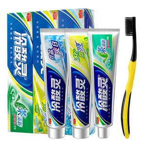 冷酸灵牙膏套装共有冰柠劲爽、井盐爽白、茶清新三支牙膏,并还赠送一支牙刷,分量充足,经济实惠,可用好长一段时间。 上榜理由: