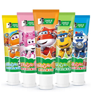含有水果口味,可以提高刷牙的主动性,成分采取食用级原料,含氟含钙,可以帮助修护龋齿。