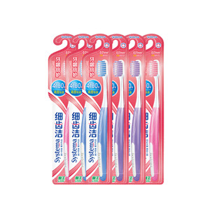 精选倍软极细绒毛,具有足够的韧性,既能清洁护理又能按摩牙龈。小巧的刷头设计,可深入口腔的各个角落,清洁不残留。