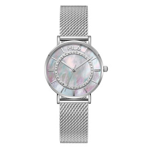 天生自带清冷感的银色腕表,在表盘部分加入了淡淡的粉色贝母,手表佩戴细节上就能散发优雅魅力。