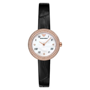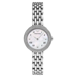 小尺寸的圆形表盘,表圈镶嵌水钻的设计,腕表视觉上就能呈现出闪耀的光泽感。