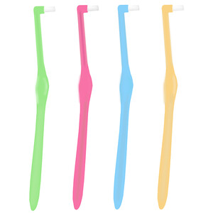 独特的单束刷头设计,深入齿间死角,清洁顽固细菌。采用凹起的手柄设计,有效的防滑又省力,握持更加舒适。