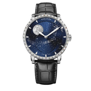 将梵高明月星辰笔触,内置于手表中,展现浩瀚宇宙的神秘之美。搭配合成蓝宝石表镜,镜面不易刮化,经久耐磨。