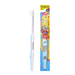内置弱电流电池,手握金属片即可释放负离子,无需牙膏也能达到清洁的目的,灵巧小刷头深入清洁细小牙缝,不给有害菌留机会。