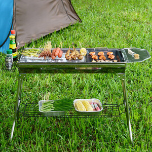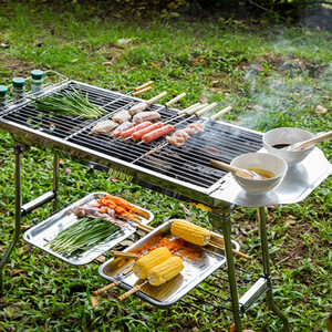 采用不锈钢材质制作的烧烤架,具有耐用不易变形的特点。烧烤架轻便易携带,还是可折叠设计。
