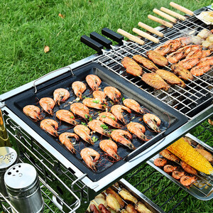 上下两层的烧烤架,功能十分强大,收纳方便有序。采用可折叠设计,很适合户外使用。