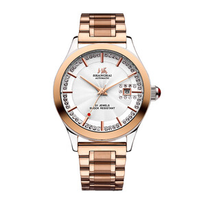 表盘上是公主皇冠的镂空设计,周身几十颗锆石点缀,优雅有韵味。玫瑰金钢带减龄衬肤色,显白效果好。
