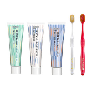 三款优质牙膏炫白、清新、护龈搭配采用东丽刷毛的牙刷,如叫嚼棉花糖般柔软舒适,双重组合带给你全新的体验。